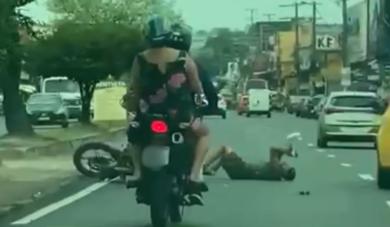 Na manhã desta quinta-feira (24/10), uma cena preocupante de violência e imprudência foi registrada na Avenida Grande Circular, localizada na zona leste de Manaus. O incidente envolveu dois motoqueiros que começaram a brigar em plena via, culminando em um atropelamento grave de um idoso que tentava atravessar a rua. De acordo com um vídeo gravado por um motorista que passava pelo local, os motoqueiros trocavam agressões verbais enquanto pilotavam em alta velocidade. A situação se agravou quando um dos motociclistas começou a perseguir o outro entre os veículos. Durante a perseguição, um dos motoqueiros, em uma manobra imprudente, acabou atropelando um idoso, que foi jogado ao chão violentamente. Testemunhas rapidamente tentaram socorrer o idoso, que ficou agonizando na via. No entanto, a demora das ambulâncias aumentou o desespero de quem estava presente. Até o momento do fechamento desta matéria, não havia informações confirmadas sobre o estado de saúde da vítima. O vídeo que documenta a briga e o atropelamento circula nas redes sociais, gerando indignação entre internautas que cobram medidas mais rígidas contra atitudes irresponsáveis e perigosas no trânsito de Manaus.