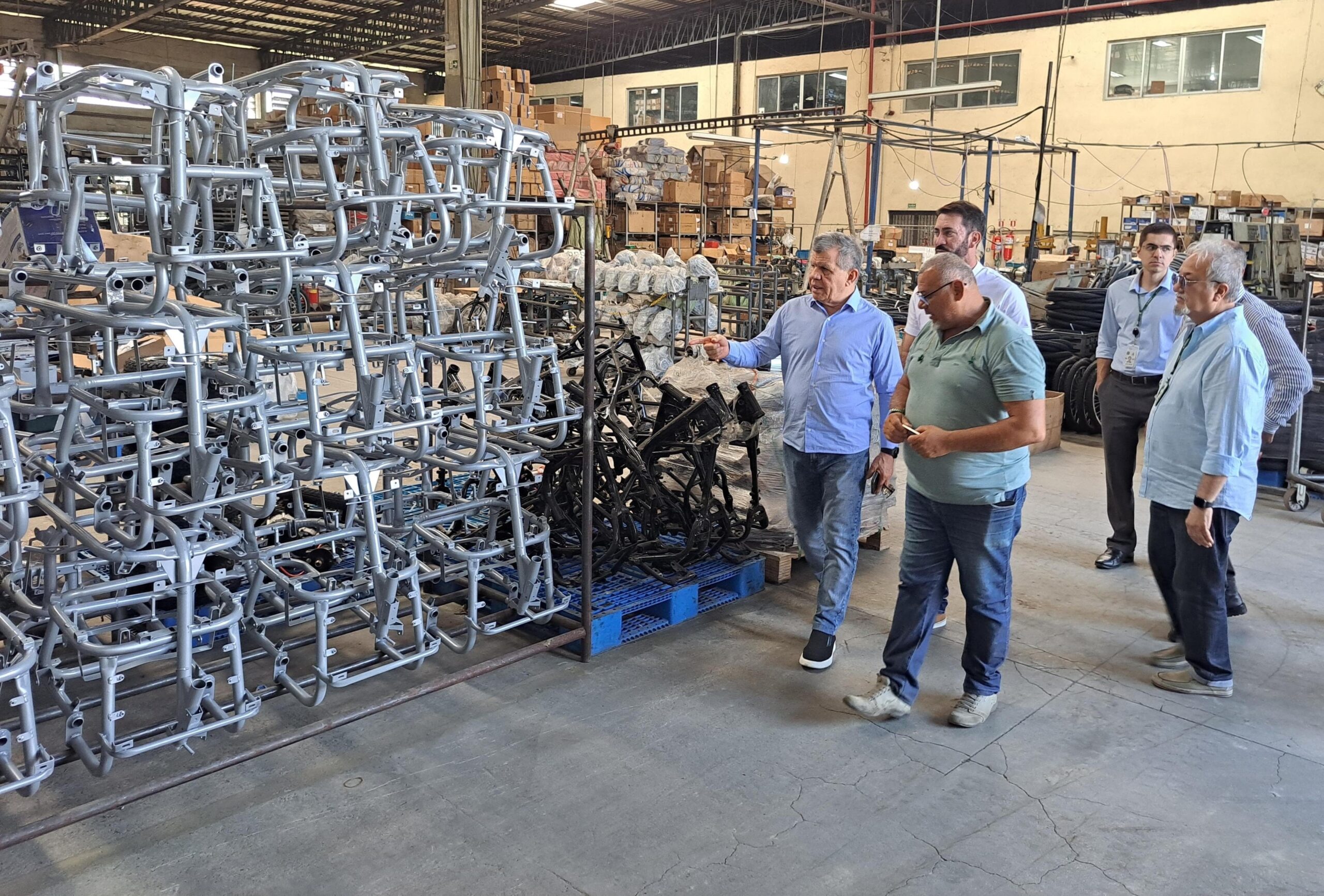 A Suframa realizou, nesta segunda-feira (7), visita técnica à Sousa Motos, instalada na avenida Puraquequara, no Distrito Industrial 2, zona Leste de Manaus. O objetivo foi conhecer de perto as operações da indústria, que atua há 15 anos no Polo Industrial de Manaus (PIM) e é pioneira na produção de bicicletas elétricas e triciclo elétrico, e triciclo cargo a combustão na capital. A comitiva da Autarquia foi recebida pelo proprietário da empresa, Antônio Alves de Sousa, e pelo gerente industrial, Antônio Marcos Costa, que apresentaram os setores de montagem de bicicletas, motocicletas e triciclos. A visita também abrangeu a área de fabricação dos chassis, que utiliza corte e estamparia a laser com tecnologia de ponta. Dentre os produtos em destaque estão as bicicletas elétricas de 350 e 500 watts, triciclo elétrico 600w, além do novo triciclo cargo elétrico 3000w, aposta recente da empresa no mercado. Atualmente, a Sousa Motos opera em um turno, com 158 funcionários e capacidade de produção mensal de até 2.900 unidades. A linha de montagem é voltada tanto para veículos elétricos quanto a combustão, todos com Certidão de Acervo Técnico (CAT) e certificados conforme as normas da Associação Brasileira de Normas Técnicas (ABNT). Além do aprimoramento constante dos produtos de seu portfólio, a empresa investe na modernização dos processos produtivos com aquisição de máquinas de corte de tubos Fiber Laser. A Sousa Motos também atua no segmento químico, com a fabricação de massa plástica cinza e branca e fabricação de partes e peças estampadas e soldadas. Participaram da visita o superintendente da Suframa, Bosco Saraiva; a superintendente-adjunta de Projetos (substituta), Camilla Medeiros; o superintendente-adjunto de Desenvolvimento e Inovação Tecnológica (substituto), Rafael Gouveia; o superintendente-adjunto de Administração (substituto), Gilvânio Paiva; o coordenador-geral de Comércio Exterior e Assuntos Internacionais, Arthur Lisboa; o administrador da Coordenação-Geral de Comércio Exterior e Assuntos Internacionais, Adamilton Mourão; e o gerente de Projetos da Superintendência-Adjunta Executiva (SAE), Ozenas Maciel. “Foi gratificante ver de perto o trabalho da Sousa Motos. Uma empresa genuinamente amazônica, que acredita no potencial da nossa região e está fazendo a diferença com inovação e geração de empregos”, salientou o superintendente da Suframa, Bosco Saraiva.