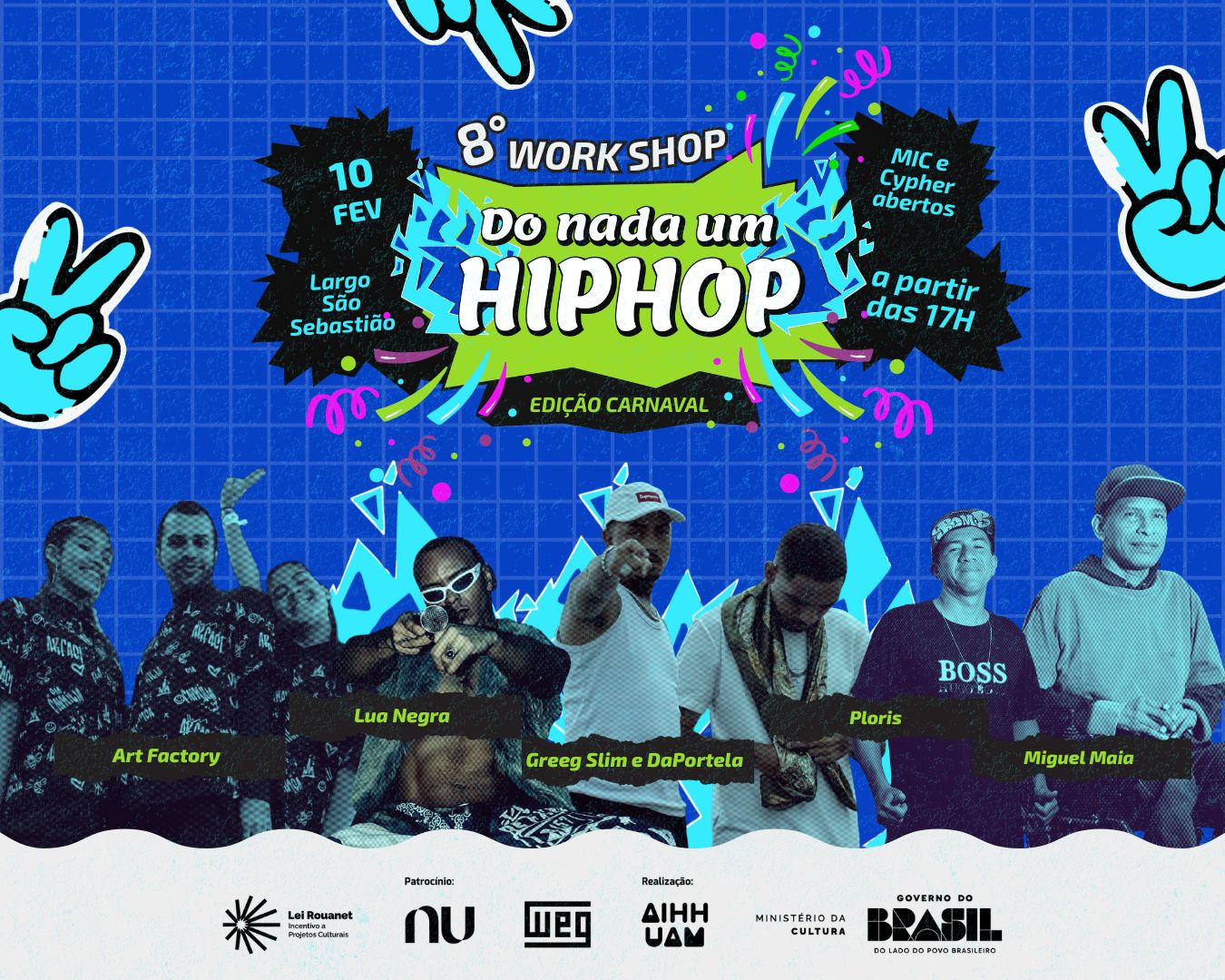 O Largo São Sebastião, no Centro de Manaus, será tomado pela cultura urbana nesta terça-feira (10/02), a partir das 17h, com a realização do evento “Do Nada Um Hip Hop: Edição Carnaval”. A ação marca o encerramento das atividades do projeto Workshops Urbanos da Amazônia e leva ao coração da cidade uma programação gratuita que une rap, dança, grafite e vivências culturais em pleno período carnavalesco. Realizado pela Associação Intercultural de Hip-Hop Urbanos da Amazônia (AIHHUAM) e pelo Ministério da Cultura, o evento reafirma o hip hop como expressão artística, social e identitária das periferias amazônicas, além de promover a ocupação cultural do espaço público e protagonismo juvenil. “O bloco Do Nada Um Hip Hop dialoga com essa energia da festa de carnaval, faz uma referência ao nosso parceiro Uendel Pinheiro e homenageia a cena local, reunindo artistas que também se formaram com a gente ao longo do projeto. É um convite não só para quem já vive o hip hop, mas para quem quer conhecer a dança, o grafite, o improviso, as rimas e toda a estética que envolve essa cultura. Hoje, no Largo São Sebastião, vai ser massa demais”, destaca Jander Manauara, diretor cultural da AIHHUAM. A programação contará com apresentações de rap dos artistas Lua Negra, Greeg Slim e DaPortela, grafite ao vivo com o artista Ploris, set da DJ Pammy, intervenção de beatbox com Miguel Maia e apresentação de dança do grupo Art Factory. O público também poderá participar dos momentos de mic aberto e cypher, espaços em que qualquer pessoa tem a oportunidade de se apresentar, rimar, cantar ou interagir artisticamente, fortalecendo a troca entre artistas e a cena cultural local. Além de celebrar a cultura hip hop, o projeto Workshops Urbanos da Amazônia tem como objetivo promover conhecimento, informação e acesso cultural em diferentes territórios de Manaus, por meio de metodologias interativas, rodas de conversa, dinâmicas, vivências e apresentações artísticas. Desde setembro de 2025, estão sendo realizados oito workshops, cada um estruturado em dois dias de atividades: um dia voltado para ações em escolas públicas, com palestras, rodas de conversa e dinâmicas educativas, e outro dia dedicado à atividade cultural, com apresentações artísticas, intervenções urbanas, batalhas de rima e batalhas de slam. Os encontros abordam temas como cultura, arte, educação, justiça climática e empreendedorismo, fortalecendo a formação cultural e cidadã de jovens e comunidades periféricas da capital amazonense. O projeto Workshops Urbanos da Amazônia é realizado pela AIHHUAM e pelo Ministério da Cultura (MinC), com patrocínio da Lei Rouanet, Instituto Nubank e Grupo WEG, e tem impacto direto na valorização da cultura urbana e no fortalecimento de talentos locais.